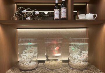 生き生きとした熱帯魚とアーティフィシャルフラワーで演出します。