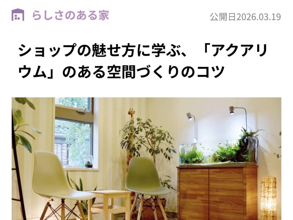 sumica アイデアでつくる、自分らしい家 こちらのサイトで「アクアリウム」のある空間づくりのコツ として弊社を取材していただきました。